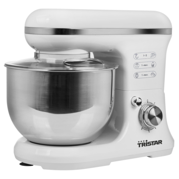 Ce robot multifonctionnel de Tristar est votre allié de choix pour mélanger, battre et pétrir. Il possède 6 vitesses et un bol grande capacité de 5 litres. Le châssis en plastique de haute qualité est facile à nettoyer, et le bol en acier inoxydable passe au lave-vaisselle. Le couvercle transparent comporte une ouverture qui permet d’ajouter des ingrédients en cours de mélange sans retapisser les murs de votre cuisine... Le robot est fourni avec fouet, batteur et crochet de pétrissage.
