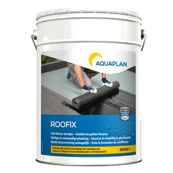 Collage simple, rapide et sans risque des rouleaux de toiture sur votre toiture ? Alors, vous aurez besoin de la colle de toiture Aquaplan Roofix en pot de 20 litres. Cet adhésif de toiture est un adhésif bitumineux renforcé de fibres - également connu sous le nom de résine à froid - qui comble les petites fissures et offre une adhérence parfaite. Dans le cas où l’utilisation d’un brûleur semblerait indispensable pour coller la toiture, cette aide ne sera plus nécessaire grâce à la colle de toiture Aquaplan, et l'épaisseur totale du rouleau de couverture sera préservée. En outre, cet adhésif de toiture empêche la formation de cloques, préserve la flexibilité de la structure du toit et présente également une résistance à l'eau. Cet adhésif de toiture est également adapté au collage ou à la réparation de bardeaux en vrac. Autrement dit : une colle de toiture avec un pouvoir d’adhérence optimal pour favoriser le traitement des rouleaux de toiture et des bardeaux sur votre toiture. Puisque les membranes bitumineuses de toiture sont résistantes à la vapeur d'eau, il faudra attendre plusieurs semaines avant que l'adhésif soit complètement sec et qu'il bénéficie de toute sa puissance adhésive. Cependant, l'adhérence initiale est suffisante pour maintenir votre matériau de couverture en place.