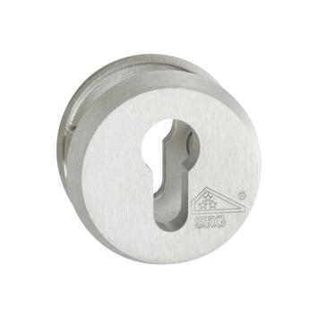 Jeu rond de rosaces de sécurité avec label de qualité SKG***. Ce produit est fabriqué en aluminium brossé ce qui lui donne un aspect mat. Cette ferrure de sécurité est également homologuée SKG***, ce qui signifie qu'il s'agit de ferrures anti-effraction très lourdes.