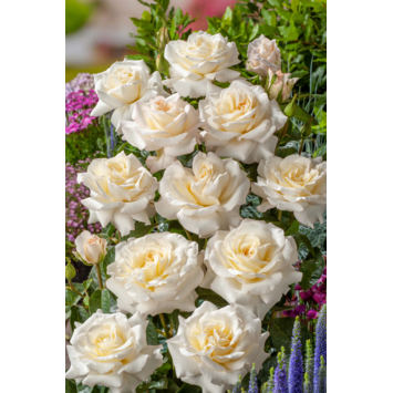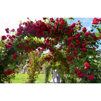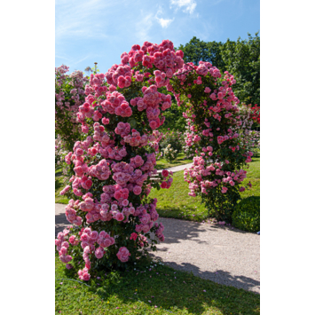Le rosier ‘Eiffel Tower’, également un hybride de thé, est célèbre pour ses grandes fleurs roses et son parfum intense. Pouvant atteindre 2 m de hauteur, il produit des fleurs spectaculaires sur de longues tiges droites, parfaites pour les bouquets. Les fleurs de 13 cm de diamètre dégagent un parfum rappelant un parfum français coûteux. Ce rosier est idéal près d’un mur ou d’une clôture et est modérément résistant aux maladies.