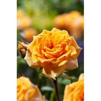 Le rosier ‘Sutter’s Gold’ est un hybride de thé aux grandes fleurs jaune orangé, souvent lavées de rouge et de pêche. Il fleurit de mi-mai à fin octobre et est apprécié pour son parfum sucré et fruité. Ses fleurs, idéales pour la coupe, mesurent entre 14 et 16 cm de diamètre. Ce rosier préfère les expositions ensoleillées et les sols bien drainés, et il est relativement résistant aux maladies.