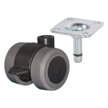 Roulette pivotante + frein TPE avec plateau 35 mm max. 70 kg