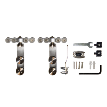 Combinez ces roulettes et ce guide de rail Eco pour porte coulissante en verre Vetro avec le rail assorti et apportez une touche moderne à votre porte en verre. Ce système pour porte coulissante se compose de 2 roulettes et d'un guide en aluminium. Le rail assorti est disponible séparément.