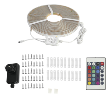Apportez de la couleur et de l'ambiance à l'extérieur avec cette bande LED d'extérieur polyvalente. Cette bande offre des couleurs RVB vives et éclatantes, mais peut également être réglée sur du blanc chaud (3000 K), ce qui permet de l'adapter facilement à votre humeur ou à une occasion. La bande LED mesure 10 mètres de long et peut être réglée en intensité avec la télécommande incluse. Avec une valeur IP44, cette bande LED est adaptée à une utilisation en extérieur. Installation facile, car la bande LED est dotée d'une bande adhésive sur toute la longueur et peut être coupée à la taille souhaitée avec des ciseaux.