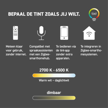 - Température de couleur : de blanc chaud (2700 K) à la lumière du jour (6500 K)