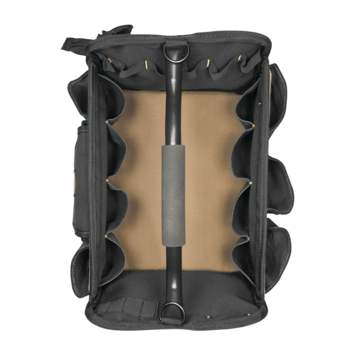 Ce sac à outils ouvert de CLC Work Gear est agencé de manière pratique avec un grand compartiment principal et 14 poches séparées pour outils et petits matériels. Un support de ruban, un clip pour mètre ruban et une poche zippée ajoutent du confort supplémentaire. Grâce aux poignées en métal avec prise douce et à la large bandoulière réglable, vous pouvez porter le sac confortablement, même lors d'une utilisation prolongée. Idéal pour ceux qui souhaitent transporter leurs outils de manière organisée et facile, que ce soit à la maison ou sur le chantier.