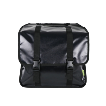 La sacoche à vélo double Dresco Transporter est une sacoche solide et pratique d'une grande capacité de 40 litres. Le sac noir est en bisonyle hydrofuge et les oreilles de pluie sur les côtés empêchent la pluie de s'infiltrer. Le sac Dresco Transporter est facile à attacher au porte-bagages grâce à la fermeture à boucle. Le dessus est composé de deux sangles pour ne pas obturer l'éclairage LED, les sangles de transport ou le siège enfant. Le sac peut être fermé avec un clic réglable pratique et une fermeture Velcro. Le sac a un dos et un fond renforcé. Dans l'obscurité, vous êtes encore plus visible grâce à la bande réfléchissante à l'avant et à l'arrière. Dimensions des sacs : 2x 33x39x15 cm.
