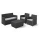 Profitez pleinement de votre jardin avec l'ensemble lounge de Mia de Allibert, composé de synthétique en aspect tressé couleur graphite. Grâce à ce matériau résistant aux intempéries vous pouvez laisser vos meubles à l'extérieur sans aucun problème. L'ensemble lounge de Corona comprend une table avec box à coussins intégré, soit un espace de rangement bien pratique. Le canapé, les deux fauteuils et le rangement à coussins constituent un ensemble complet. Et pour un confort optimal, les coussins d'assise gris sont également compris. En deux mot, l'ensemble lounge de Corona, c'est la garantie d'un salon extérieur 100% détente. Également disponible en coloris cappuccino.