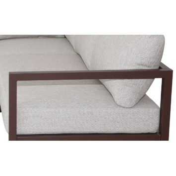 La structure en métal brun assure une base solide tout en apportant une touche contemporaine. Son design polyvalent s’intègre facilement dans différents styles d’aménagement extérieur et se combine aisément avec d’autres meubles ou accessoires pour créer un espace accueillant et harmonieux.