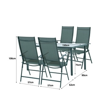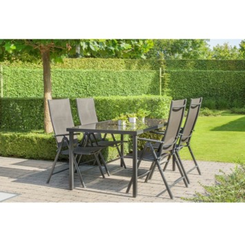 À la recherche d'un set de jardin plein de caractère? L'ensemble de jardin Nantes est fait pour vous. Ce salon de jardin Nantes est un ensemble complet qui vous permettra de profiter au maximum de l’été. Il est composé d’une table à plateau en verre et d’une structure en acier (150x90 cm), plus 4 chaises à assise en textilène et dossier inclinable. Les chaises inclinables sur 3 positions se replient pour un rangement aisé. Ces meubles résistent aux intempéries et s’entretiennent très facilement. Bref, ce salon de jardin de luxe vous garantit un confort incomparable !