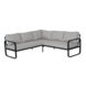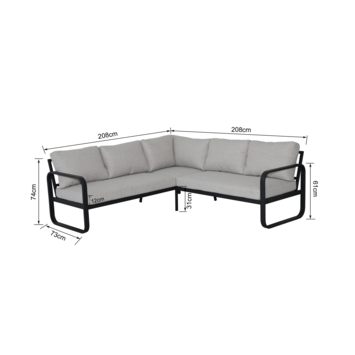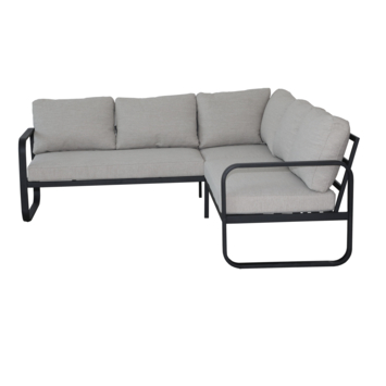 Grâce à sa forme en angle, tout le monde peut s’asseoir facilement ensemble et l’espace reste ouvert et accueillant. Le salon se combine aisément avec d’autres meubles de jardin pour compléter votre aménagement extérieur.