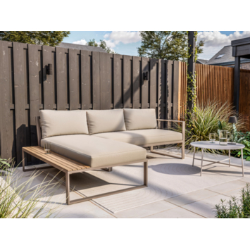 Le salon de jardin Tulum est un canapé d’angle d’extérieur offrant trois places et prêt à être utilisé au quotidien. Il crée un espace fixe où profiter du plein air, prendre un verre ou simplement se détendre.