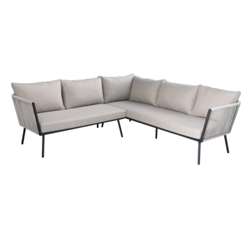La structure en métal noir, à la fois solide et élégante, apporte une touche contemporaine qui s’intègre facilement dans tout style d’extérieur. Les coussins, épais et accueillants (25 cm pour le dossier, 10 cm pour l’assise), assurent un confort idéal, que vous soyez en mode relaxation ou en mode papotage.