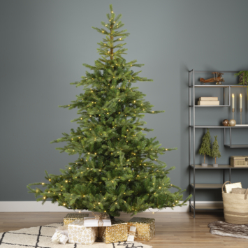 Le sapin de Noël artificiel Grandis Fir de 270 cm de Everlands, inclus l'éclairage, est parfait pour ceux qui souhaitent un grand sapin d'ambiance qui est facile à installer. Cet arbre mesure 270 centimètres de haut et 172 centimètres de large, et est équipé de 118 branches pliables qui se mettent en forme automatiquement grâce à un système de charnière. Les aiguilles sont en PE et en PVC, ce qui donne un look plein et naturel. L'éclairage micro LED blanc chaud est déjà intégré dans l'arbre et crée immédiatement une ambiance dès qu'il est branché. Le socle en métal noir assure la stabilité et s'harmonise bien avec l'ensemble. L'arbre est destiné à un usage intérieur et répond aux normes de sécurité incendie européennes. Un choix fiable pour ceux qui veulent faire les choses en grand avec un sapin à la fois pratique et festif.