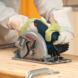La scie circulaire manuelle, avec connexion pour l'aspirateur à poussière/eau, est adaptée pour couper des panneaux en bois sur mesure. Les coupes en biais peuvent aller jusqu'à 45°. Les prix incluent une lame de scie à dents grossières (rapide) et une à dents fines (précision).