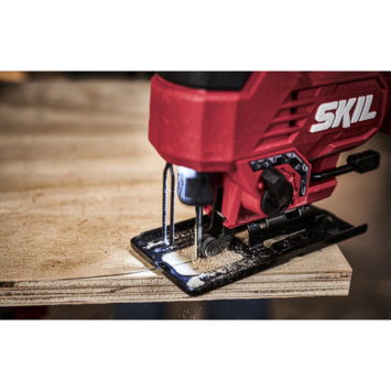 Parfaitement adaptée aux coupes droites et courbes, la scie sauteuse SKIL 3421 assure une excellente visibilité grâce à son éclairage LED intégré. Elle dispose d’un sélecteur de matériau à quatre positions pour adapter les réglages à chaque tâche, ainsi que d’un variateur de vitesse pour un contrôle précis sur différents matériaux. Le système de fixation Clic permet de changer les lames rapidement et sans outil, simplifiant l’utilisation au quotidien.
