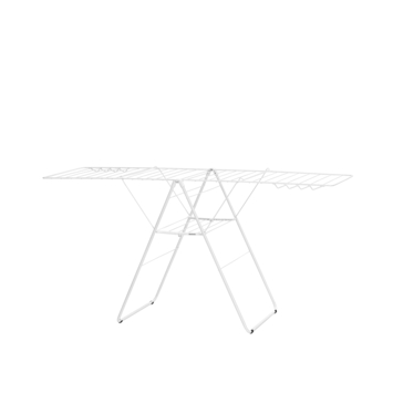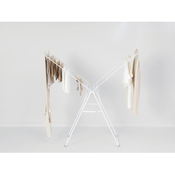 Doet wat hij moet doen. Stevig droogrek dat niet snel kantelt met voldoende ruimte voor een was uit een grote wasmachine.