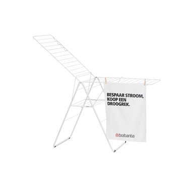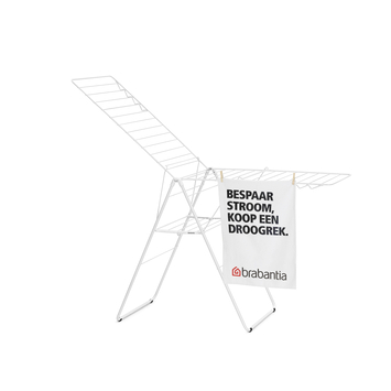 Avec le séchoir Brabantia HangOn, vous gagnez du temps et de l'énergie en séchant votre linge naturellement. L'étendoir à linge HangOn de Brabantia dispose de 25 mètres d'espace de séchage et de 8 crochets pour suspendre les cintres. Tout votre linge est-il sec ? Ensuite, pliez simplement le rack dans un petit paquet et rangez-le.
