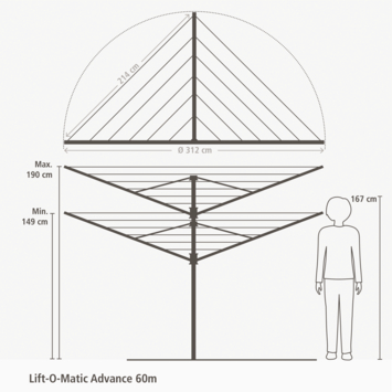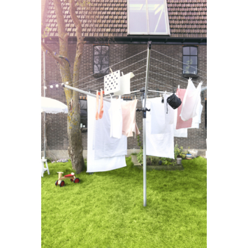 Faites votre lessive en coup de vent : votre séchoir rotatif se charge du travail. Placez le séchoir à votre hauteur de travail idéale d'une seule main (entre 149 et 197 cm) grâce au système Easy Lift, et faites-le tourner. Un formidable séchoir rotatif doté de cordes à linge antidérapantes de haute qualité et résistantes aux UV, qui restent toujours parfaitement tendues. Chaque bras est équipé d'œillets spéciaux pour accrocher des cintres. Un vrai jeu d'enfant ! En plus, il protège la planète.