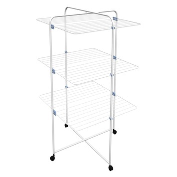 La tour de séchage Lenear 3 de l'italien Gimi est le séchoir idéal grâce à sa capacité de séchage compacte mais importante de pas moins de 33 mètres. La base de cette tour de séchage a une structure spécifique pour plus de stabilité et pour suspendre le linge facilement et en toute sécurité. Pratique à utiliser grâce aux roulettes qui permettent de déplacer le séchoir, même lorsqu'il y a du linge accroché dessus.