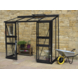 La serre Broadway 84 est un modèle thermolaqué noir qui s’adosse à un mur, très pratique, au look contemporain et très élégante. Seule condition : disposer d’un mur suffisamment solide. La double porte coulissante sans seuil et à serrure se situe dans la longueur de la serre, contrairement à de nombreux autres modèles. La serre Broadway est dotée de verre sécurité de 3 mm d’épaisseur (grandes vitres). Le vitrage est maintenu par des fixations en plastique. Dans une serre, une bonne aération est vitale. C’est pourquoi la serre Broadway possède 1 lucarne. Pour plus de facilité, il est recommandé d’installer un dispositif d’ouverture automatique de la lucarne. Ces dispositifs tiennent compte de la température pour ouvrir ou fermer automatiquement la lucarne. Pour une installation stable et solide, il est nécessaire de mettre en place des fondations sous le pourtour de la structure. En standard, la serre adossée Broadway est livrée (gratuitement) avec un périmètre de fondation en aluminium de 8 cm de haut.