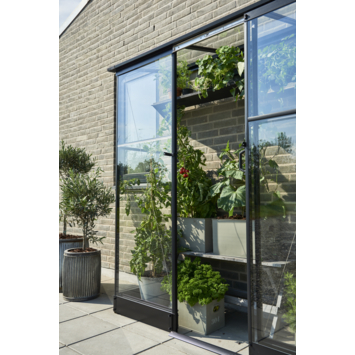 Créez une oasis de fraîcheur à portée de main ! Que vous soyez un jardinier chevronné ou débutant, il y a toujours une belle place pour cette serre murale compacte. Réalisez votre rêve et découvrez la magie de la culture dans la magnifique Qube Lean-to 26. La serre murale est fabriquée dans un matériau de haute qualité, vous protégez ainsi vos cultures contre les éléments. La serre murale est dotée en standard d'un revêtement noir. De dimensions 65x198x189/230, cette serre murale a une superficie de 1,23 m². Le verre de sécurité est fixé par une bande de vitrage. La serre murale est dotée à l'avant d'une gouttière équipée de pièces de raccordement auxquelles peut être raccordé le jeu de tuyaux de pluie en option Ø 40 mm. La porte coulissante simple avec poignée mesure 184 cm de hauteur et est équipée d'un rail de porte télescopique à seuil très bas. Nous fournissons le Qube Lean-to 26 avec le matériel de montage, vous pouvez l'assembler à l'aide du manuel de montage.