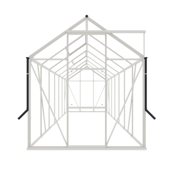 La fondation intégrée de la serre Kate assure une entrée confortable. Attention! Si vous placez la serre sur un sol non pavé, n’oubliez pas de commander des ancres de fondation supplémentaires de la couleur du cadre. La serre est équipée de gouttières, complètes avec deux tuyaux de descente, pour recueillir facilement l’eau de pluie. Avec une hauteur de faîtage de 215 cm, cette serre offre une hauteur de travail confortable, vous permettant de cultiver facilement.