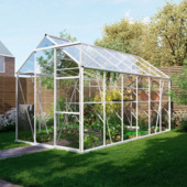 La serre de jardin Kate V de Royal Well est une belle serre pratique, la solution parfaite pour tous les passionnés de jardinage. Avec son design élégant et sa conception pratique et robuste en aluminium, elle offre l’espace idéal pour faire pousser vos plantes dans les meilleures conditions. Le verre de sécurité de 3 mm d’épaisseur solidement fixé avec du ruban mousse amortissant à l’intérieur et des bandes de vitrage en PVC à l’extérieur, faciles à installer et assorties à la couleur des profilés.