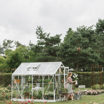 La serre de jardin Mary est disponible en quatre profondeurs différentes, avec des surfaces allant de 4,6 à 9 m². Ce modèle est proposé en trois couleurs : blanc, vert-gris et noir, avec des profilés à finition mate élégante. La serre de jardin Mary est le choix parfait pour ceux qui souhaitent combiner style et fonctionnalité.