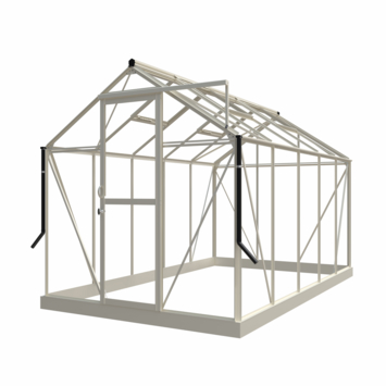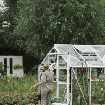 La serre de jardin Mary est disponible en quatre profondeurs différentes, avec des surfaces allant de 4,6 à 9 m². Ce modèle est proposé en trois couleurs : blanc, vert-gris et noir, avec des profilés à finition mate élégante. La serre de jardin Mary est le choix parfait pour ceux qui souhaitent combiner style et fonctionnalité.