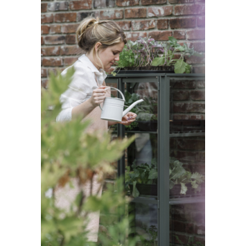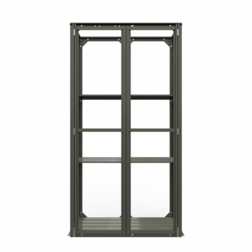 Pensée pour les balcons et petits jardins, cette serre haute (141,5 cm) allie design élégant et fonctionnalité. Sa structure en aluminium robuste, finition vert-gris, accueille des panneaux transparents en polycarbonate de 3 mm, garantissant à la fois sécurité et excellente transmission de la lumière.