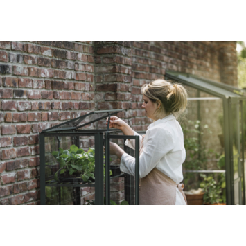 À l’intérieur, profitez de étagères modulables, faciles à adapter selon vos cultures: herbes aromatiques, fleurs colorées ou jeunes pousses s’y épanouissent en toute simplicité. La notice et tout le matériel de montage sont inclus à la livraison.