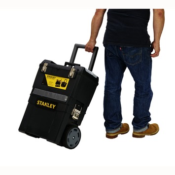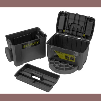Vous êtes un bricoleur mobile ? Offrez-vous un chariot à outils Stanley Rolling Workshop 2 en 1. Ce chariot dispose de deux grands compartiments que vous pouvez rapidement séparer, d'un verrouillage métallique, de roues solides et d'une poignée rétractable. Son volume est de 25 litres et sa capacité de 17 kilos.