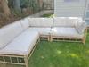 Om mijn zelf ontwerpen tuinmeubilair te vervolledigen, past deze hoekset prima bij de kussens die ik vorig jaar reeds aankocht. Vanaf nu heb ik een super coole pallet zithoek.