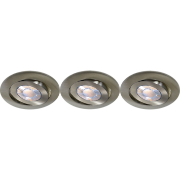 Les spots encastrables GAMMA acier, en lot de 3 pièces, sont équipés d'un culot GU10. Le spot encastré est orientable afin que vous puissiez facilement régler le faisceau lumineux. Cela rend le spot facile à utiliser pour mettre en valeur un point précis de votre intérieur. Grâce à son design épuré, le spot encastré s'intègre bien dans n'importe quelle pièce moderne. Bref, le spot encastré GAMMA est un bel éclairage d'accentuation pour tout intérieur. Les spots encastrés sont fournis avec 3 ampoules GU10 de 10 W.
