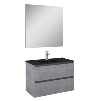 Set meuble de s.d.bain Heon Atlantic 80 cm béton + miroir et lavabo noir