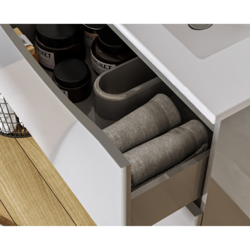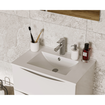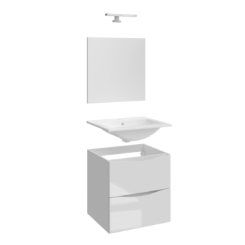 Set meuble de salle de bain Smiley Allibert 60 cm blanc haute brillance avec lavabo porcelaine et miroir avec éclairage Led