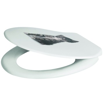 Un siège WC de Handson s'adapte à n'importe quel WC standard, il est confortable et bien solide. Disponible en différents designs modernes ou classiques, dont ce siège Fynn de couleur blanche avec un joli petit chat.