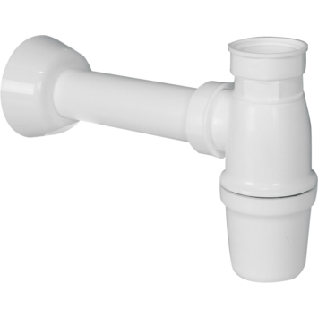 Cette garniture d'écoulement pour lavabo contient le siphon, le tube d'évacuation et la rosace murale, mais pas de bonde ni crépine.