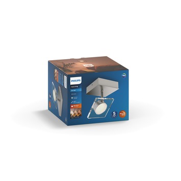 D'aspect moderne, le spot encastré Philips Golygon en métal et plastique d'une élégante couleur grise instaure une ambiance idéale. Le spot orientable permet de diriger la lumière exactement vers la zone souhaitée. Et grâce à l'ampoule WarmGlow, la pièce prend un aspect agréable. Plus vous réduisez l'intensité, plus la lumière est chaude, et cela fonctionne avec la plupart des variateurs. Pour finir, avec Click!Fix, le montage se fait simplement.