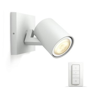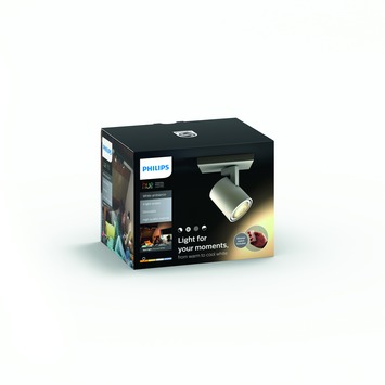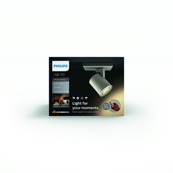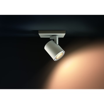 Le spot orientable blanc Hue Runner de Philips comprend une ampoule LED de 5,5 watts ou 250 lumens. Ce spot simple de haute qualité allie modernité, durabilité et conception irréprochable. Sa lumière blanche naturelle et dimmable est énergisante, vous aide à vous réveiller, à vous concentrer, à lire et à vous détendre. L'ampoule est comprise, mais pas le bridge et l'interrupteur, que vous trouverez facilement en magasin ou sur le webshop de GAMMA. Bon à savoir : le système Hue de Philips, c'est la garantie d'un éclairage intelligent et économe en énergie, partout dans la maison. De plus, ce dispositif LED vous permet également de contrôler votre éclairage à distance, grâce à une application gratuite sur votre smartphone ou votre tablette. Vous pouvez ainsi ajuster l'éclairage de l'ensemble des pièces de votre logis, selon vos préférences et besoins.