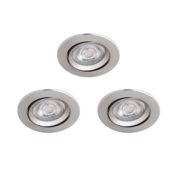 Les trois spots encastrables Philips Sparkle nickel arborent un look moderne. La lumière LED régulière de couleur blanc chaud des spots orientables est très puissante et s'atténue à l'aide d'un variateur adapté. En plus, grâce à leur faible hauteur, ils se montent dans la plupart des plafonds abaissés.