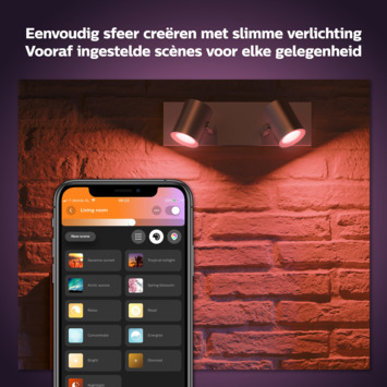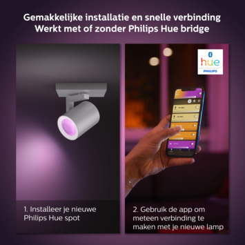 Donnez de la couleur à votre intérieur avec Philips Hue Argenta en teinte alu. Les 2 spots, montés sur une socle rectangulaire, sont équipés de lampes LED White and Color Ambiance qui produisent une lumière en 50.000 nuances de blanc et plus de 16 millions de couleurs. Idéal pour le salon ou la chambre à coucher. Vous pouvez allumer et éteindre les lampes, les atténuer et changer de couleur directement via l'app Philips Hue Bluetooth. Une autre option consiste à se connecter au Hue bridge qui donne accès à toutes les fonctionnalités de l'éclairage intelligent, telles que la personnalisation des ambiances lumineuses, la programmation horaire et beaucoup plus.