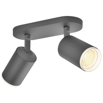 Personnalisez l'ambiance de votre intérieur avec le projecteur noir apparent Philips Hue Fugato à base ronde. Son design moderne est idéal aussi bien pour le séjour que pour la chambre à coucher. Grâce à l'app Philips Hue Bluetooth, vous pouvez allumer et éteindre les deux lampes LED ambiance, varier ou ajuster la couleur directement depuis votre smartphone ou tablette. En vous connectant au Hue bridge, vous accédez à toutes les fonctionnalités de l'éclairage intelligent: personnalisation d'ambiances lumineuses, minutage et bien plus encore. Le spot est orné d'une bordure qui s'illumine dans la couleur de votre choix, ajoutant ainsi une touche d'ambiance supplémentaire.