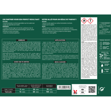 Ik bracht een dikke laag aan met een borstel op een donkergrijze verflak die al meer als 30 jaar op de muur (pleisterwerk) zat. 5 minuten later kon ik zeer makkelijk met een muurmes de oude verf in linten van de muur schrapen. Dit zonder het pleister te beschadigen. Achter met lauw water de restanten verf en product van de muur gewassen. 24u later de muur opnieuw geschilderd en schitterend resultaat! Een echte aanrader!