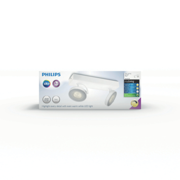 Support 2 spots Clockwork Philips LED intégré 4W = 54W blanc