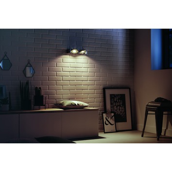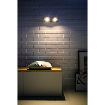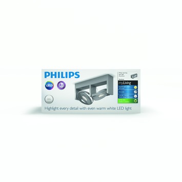 Un éclairage moderne et contemporain de qualité ? Voici le support de 2 spots Particon de Philips. En aluminium argenté, il dispose de 2 lampes LED intégrées de 6W réglables en puissance et orientables. Il se fera certainement remarquer dans des intérieurs modernes.