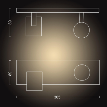 Ce luminaire à spots Philips Hue Runner noir se compose d'un socle rectangulaire sur lequel sont montés deux spots noirs directionnels. Les deux spots sont équipés de lampes LED White Ambiance, qui vous offrent facilement le choix d'une lumière blanche chaude à froide. Grâce aux 50 000 nuances de blanc, vous disposez toujours de la bonne lumière pour vous détendre, vous concentrer, lire ou faire le plein d'énergie. Utilisez l'interrupteur intelligent inclus pour allumer et éteindre vos lumières, les tamiser ou les éclaircir. Vous pouvez également facilement allumer et éteindre la lampe ou la régler sans effort avec l'application Philips Hue sur votre smartphone ou votre tablette. Lorsque vous vous connectez au Hue Bridge, vous avez accès à toutes les fonctionnalités d'éclairage intelligent disponibles, telles que la personnalisation des scènes d'éclairage, le réglage des minuteries et l'ajout d'accessoires tels que des capteurs de mouvement et des commutateurs sans fil intelligents.