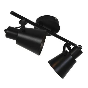 Ce luminaire à 2 spots GAMMA Sorrento a un design industriel. Son armature noire mate et son fil visible lui donnent un effet robuste. Les spots sont orientables et peuvent être et pivotés. Ce luminaire convient à plusieurs pièces telles que la chambre, le salon, le hall ou les toilettes.