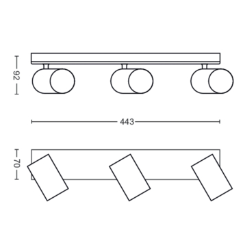 Support 3 spots Kosipo Philips 3x GU10 sans ampoules max. 10 W noir